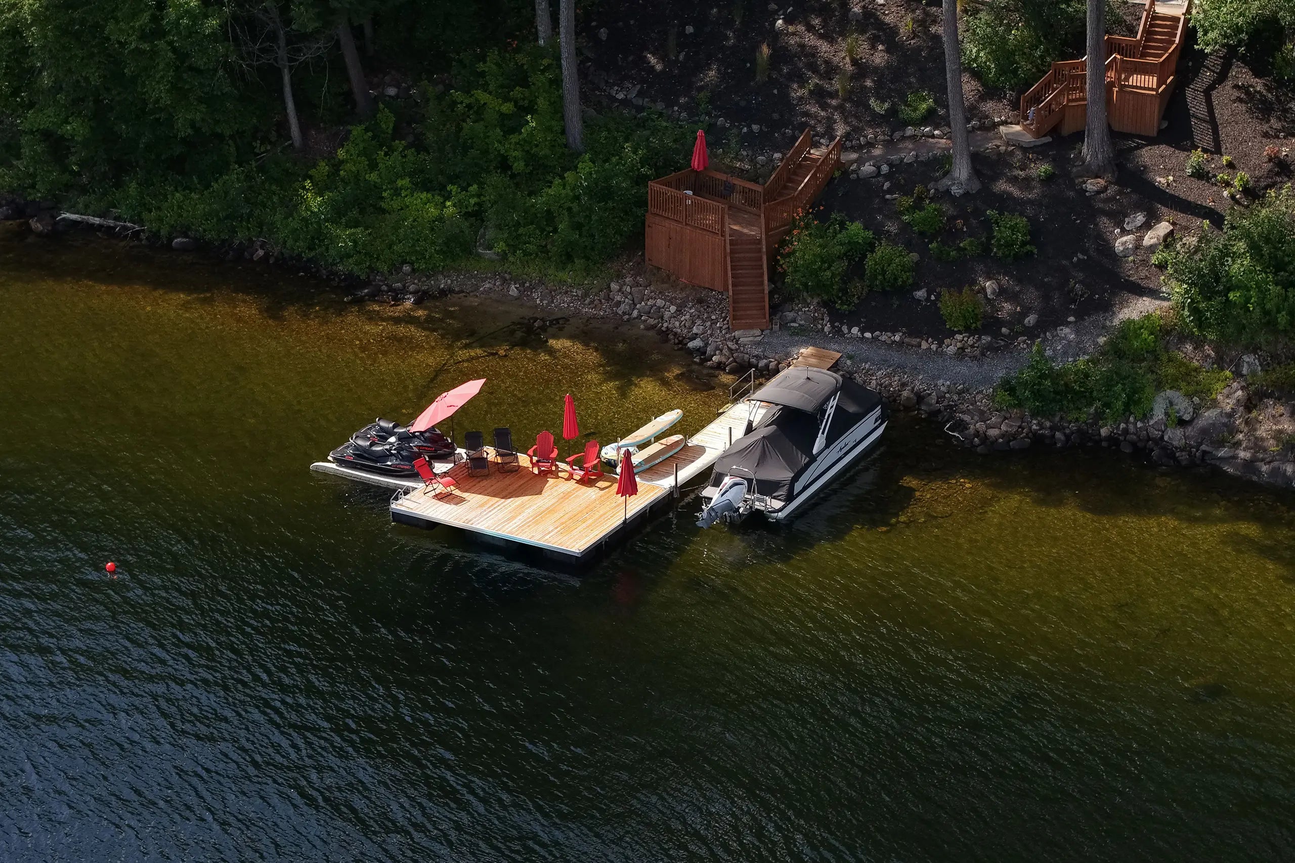 Dock installations must comply with municipal regulations and the requirements of the MELCCFP (Ministry of the Environment). Municipalities may also have their own rules regarding dimensions, materials, and placement.